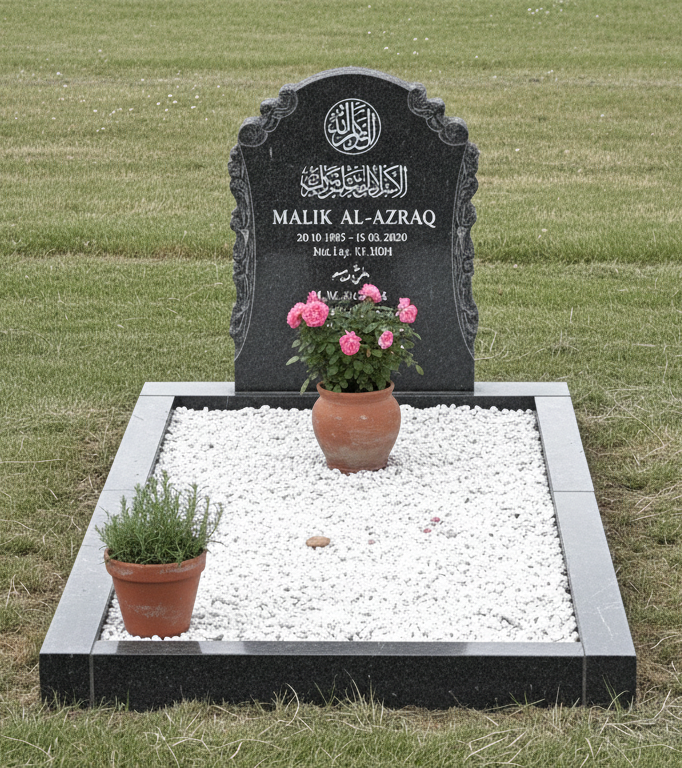 gefertigt aus hochwertigem Imperial Red Granit, bietet sie einen bleibenden Ort der Erinnerung, der den islamischen Glauben respektvoll widerspiegelt.